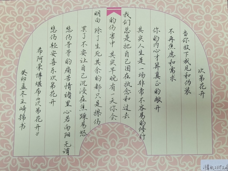 为引导员工关注心理健康、弘扬心理文化,为宣传和普及心理健康知识,提高老员工心理素质,展现当代老员工的风采,营造积极向上的校园氛围,电子信息工程书院于近期举办了“以心执笔 润心前行”心理书画比赛活动。