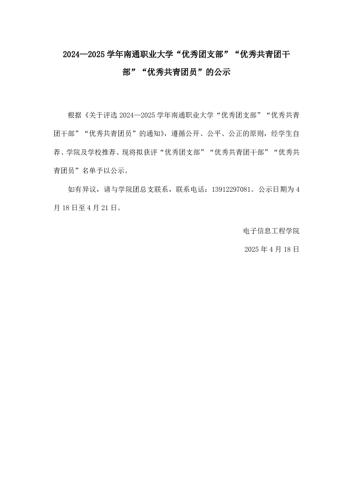 2024—2025学年beats365唯一官网入口官网“优秀团支部”“优秀共青团干部”“优秀共青团员”的公示