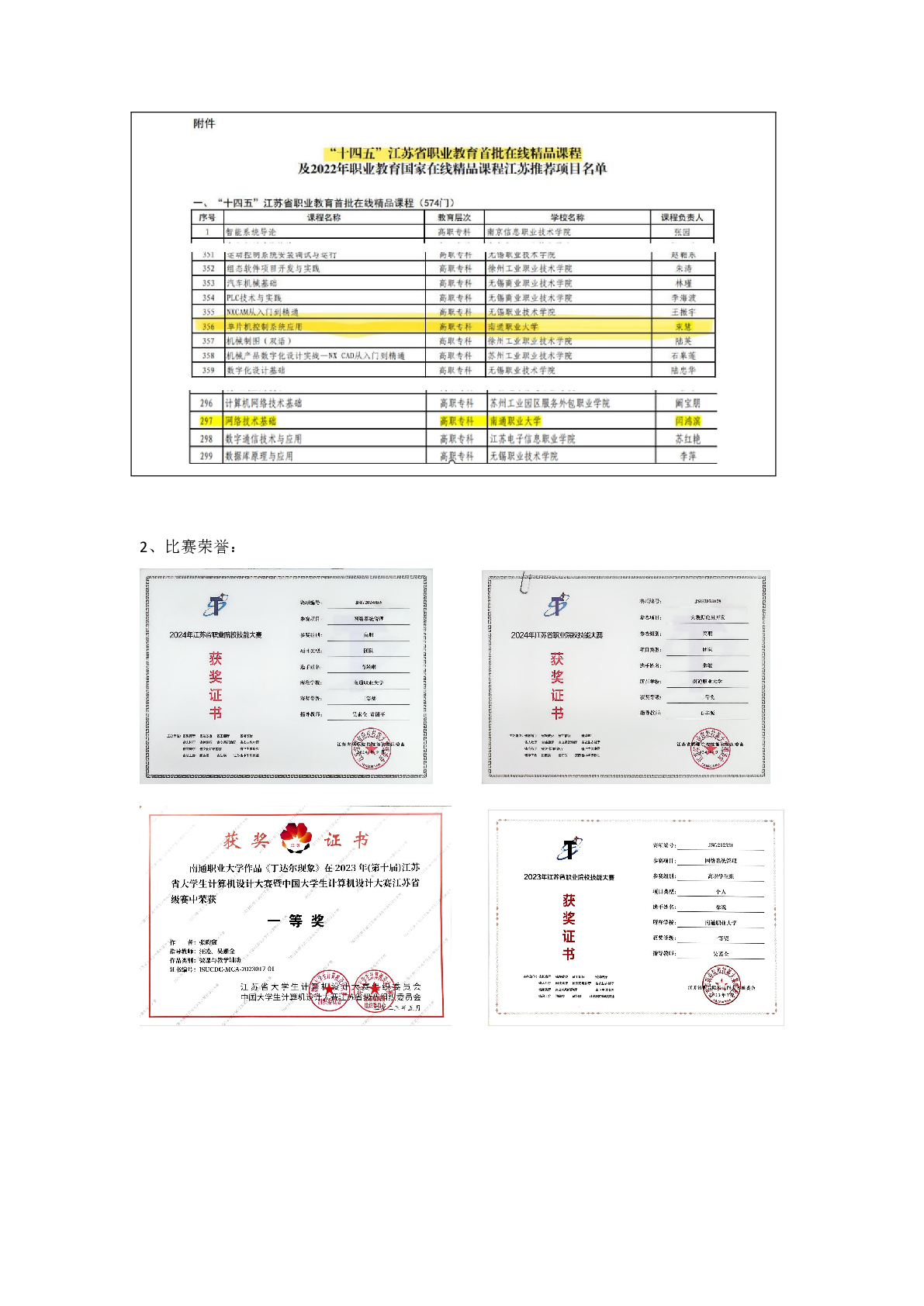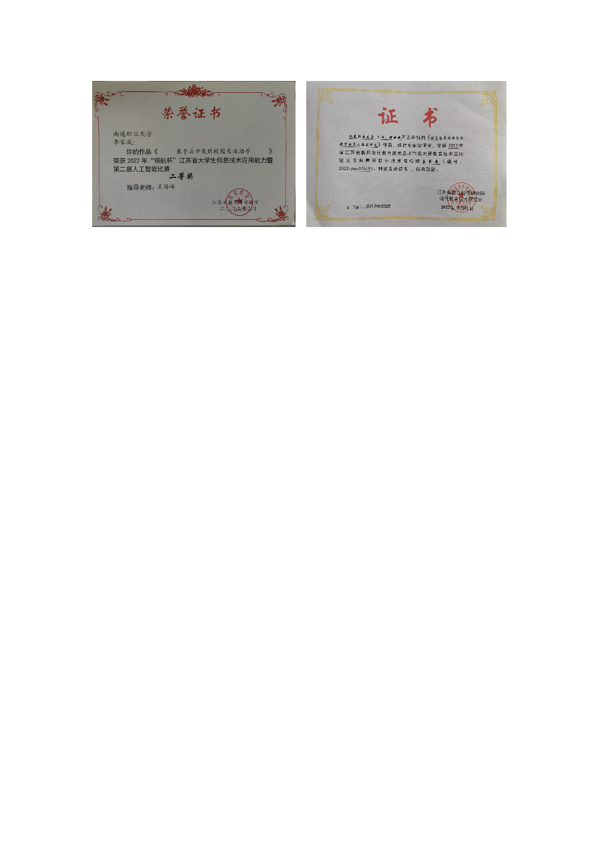 部分证书展示